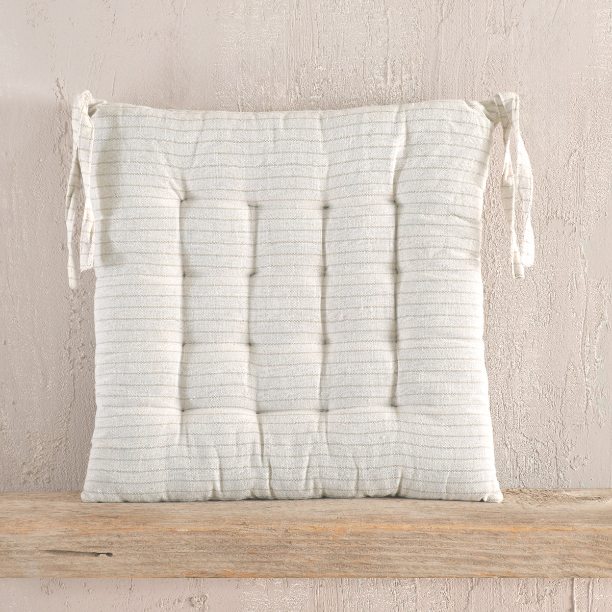 Μαξιλαράκι Καρέκλας από λινό ύφασμα με ραφές & κορδόνια δεσίματος – Φυσικό με ρίγα σε μπεζ χρώμα και διάσταση 40Χ40.