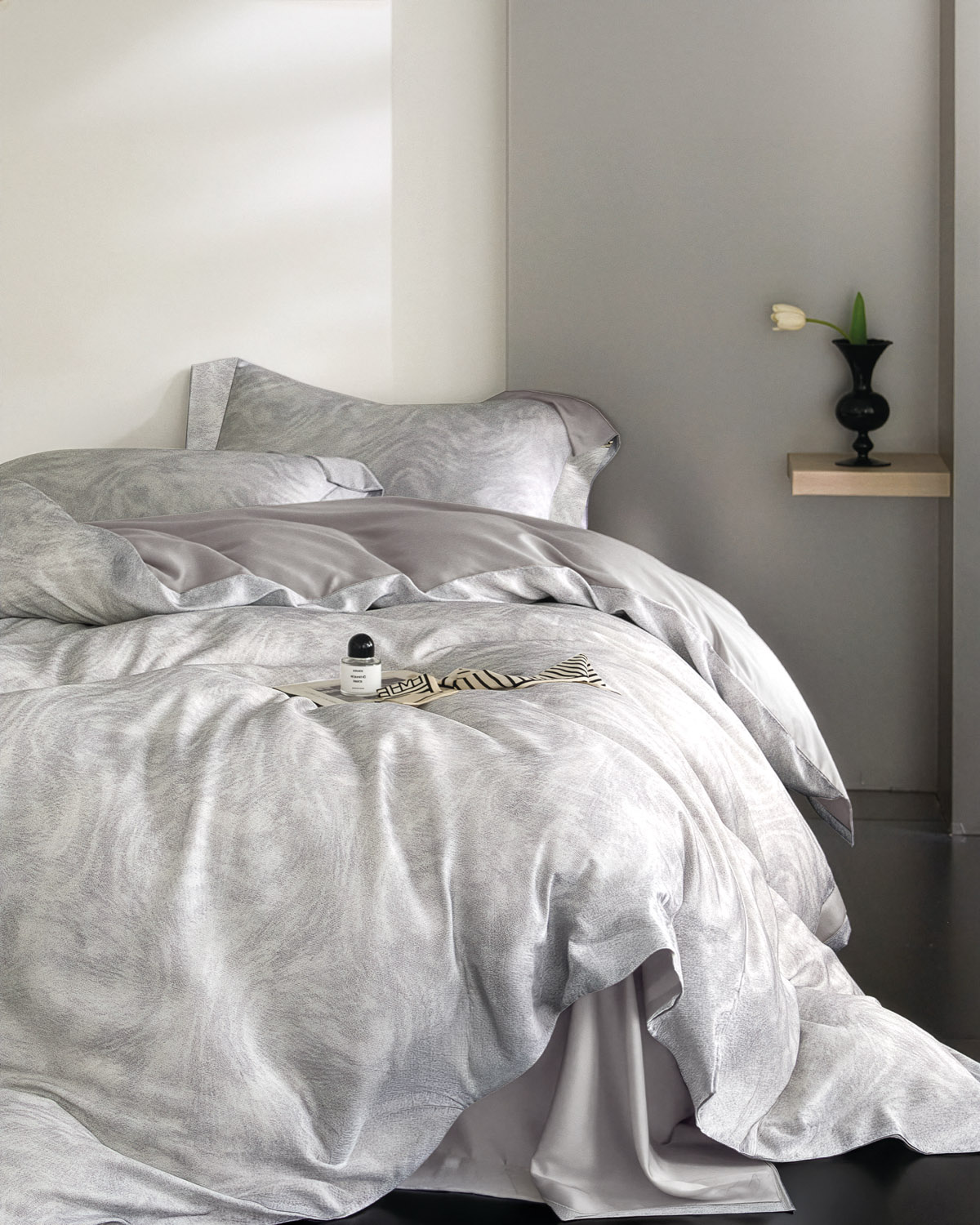 Ένα υπέρκομψο, υπέρδιπλο πάπλωμα, διπλής όψης σε ουδέτερες αποχρώσεις. Η πάνω όψη είναι αφηρημένο σχέδιο καθιστώντας το ιδανική επιλογή για κάθε κρεβατοκάμαρα ενώ η πίσω όψη είναι μονόχρωμη. Το εξωτερικό ύφασμα είναι κατασκευασμένο από 100% Tencel Lyocell, 300 κλωστών με νήματα πενιέ, που το καθιστά εξαιρετικά μαλακό, ανθεκτικό και εύκολο στο σιδέρωμα, ενώ η γέμιση του είναι από ψημένη, υποαλλεργική, πολυεστερική βάτα 380γρ/τμ. Η ποιότητα και το μοναδικό τους σχέδιο τους θα δώσουν στην κρεβατοκάμαρά σας ένα ξεχωριστό στυλ. Στο σετ περιλαμβάνονται και δύο μαξιλαροθήκες τύπου oxford διπλής όψης.
